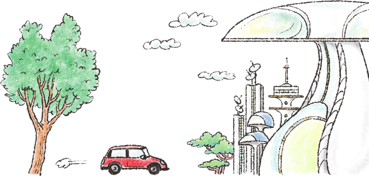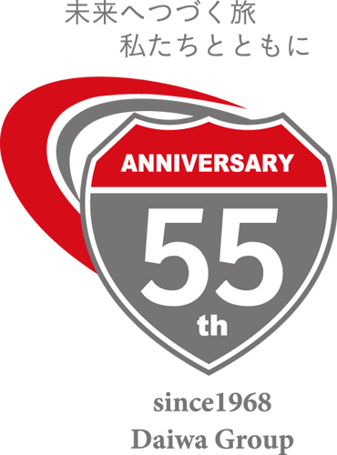 ダイワグループが歩んできた55年の道のりをハイウェイの標識に見立て、未来へと続く道をコーポレートカラーの流線で表現しました。これから始まる新しい旅路も、皆さまの夢や希望を乗せて一緒に、楽しいものにしていきたいという願いを込めています。